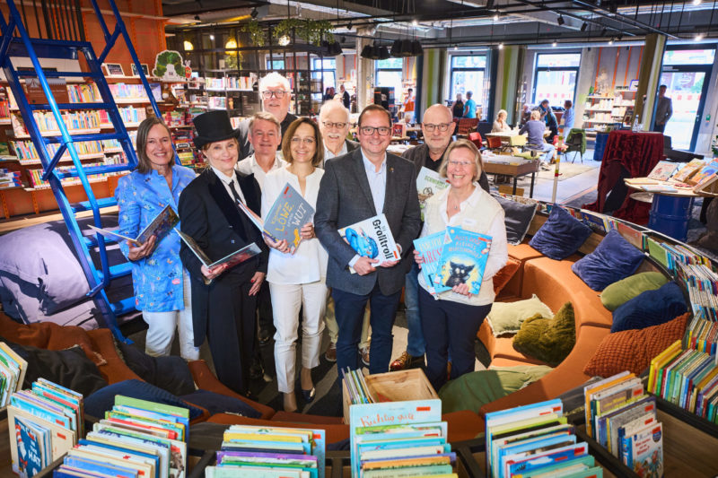 Am 15.09.25 feierte das Essener Lesebündnis mit rund 50 Vorlesenden und unterstützenden Personen das 20jährige Vereins-Jubiläum. Wir durften in der Stadtteilbibliothek Huttrop zu Gast sein, die Ende 2023 mit einer Neukonzeption eröffnet wurde. Behaglichkeit, Offenheit, Helligkeit, Übersichtlichkeit und Geselligkeit stehen bei dieser neuen Bibliothek im Mittelpunkt. Die Stadtteilbibliothek Huttrop wurde als Pilot-Projekt für weitere Stadtbibliotheken zu einem Ort der Begegnung umgebaut. Sie ist ein Ort, an dem man sich wohl fühlt; eine Art Wohnzimmer, das gemütlich ist und wo man sich trifft.